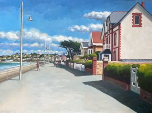 Villa blanche et rouge 80x60cm